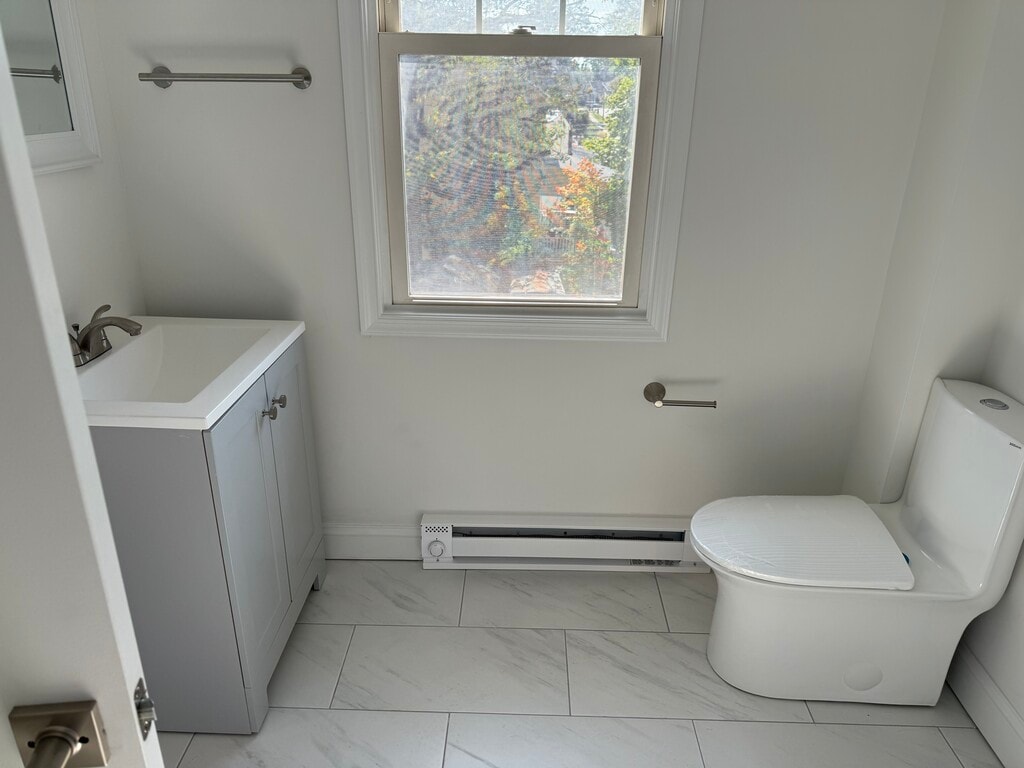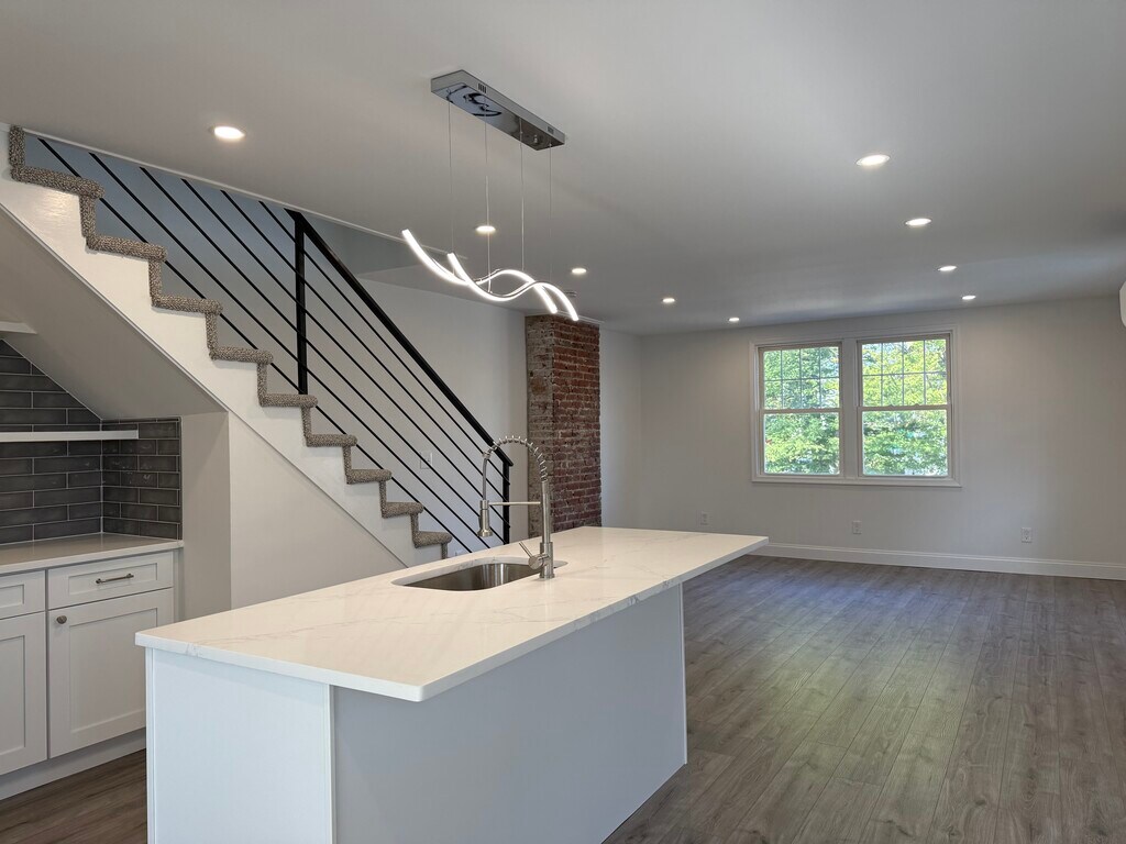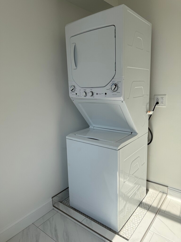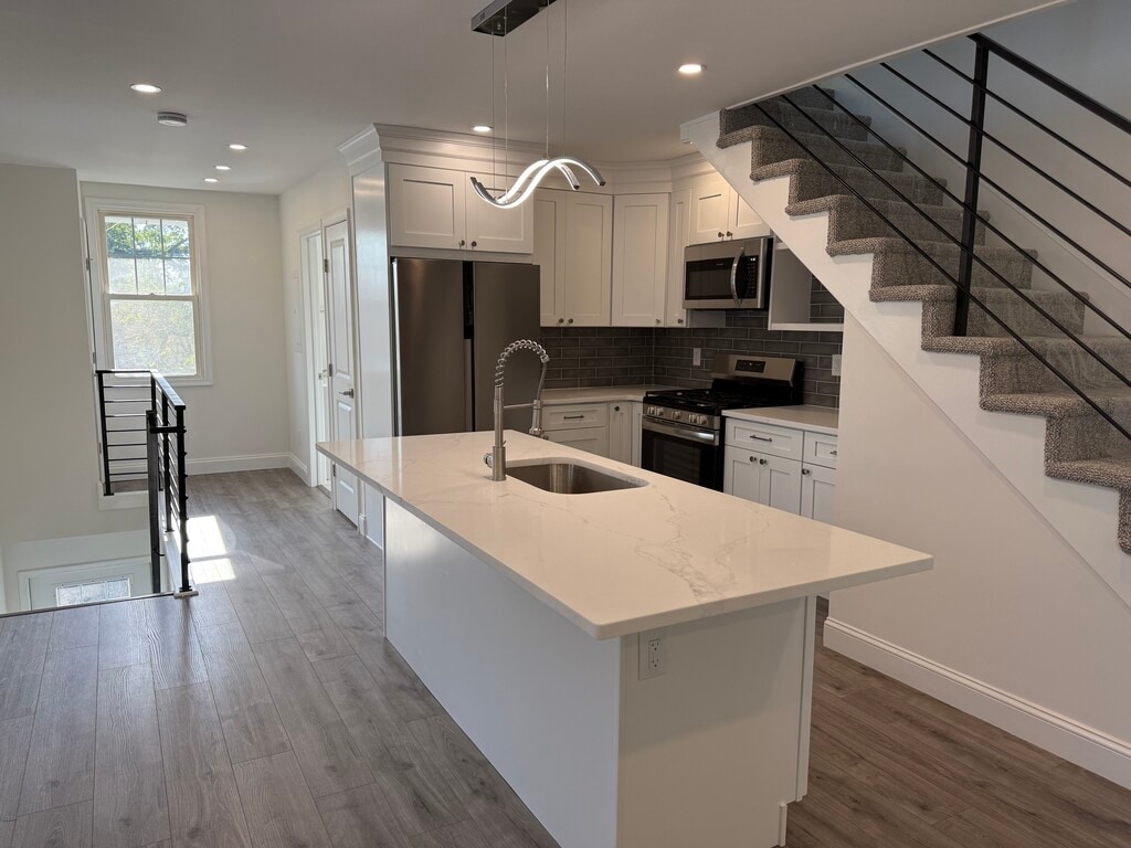This totally new and totally renovated 2 Bedroom 1 1/2 bath air-conditioned apartment has off street parking with a washer and dryer in the unit. Everything is new including the appliances, flooring, carpeting and custom railings. The owner is a Real Estate Broker.