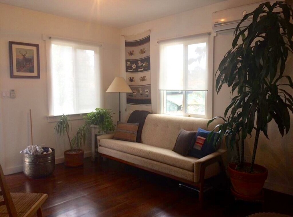 Freestanding, studio house with private, fenced yard. This charming California bungalow is part of a three house compound in a tucked-away Echo Park location. Set up like an alcove studio with a living room and adjacent sleeping alcove (easily screened off like a bedroom), this unit offers privacy, vintage appeal and modern conveniences. Eat-in kitchen has custom cabinets, Caesarstone counters, stove/hood, fridge, and laundry hookups the unit stay comfortable with a mini-split heater/air conditioner. Vintage-inspired bath and Douglas Fir flooring throughout. One parking space on the property is included. $1995/month, one month deposit. Water and bi-monthly gardening paid by owner. PLEASE do not disturb property tenants. Small pet (cat or dog) will be considered with additional deposit.