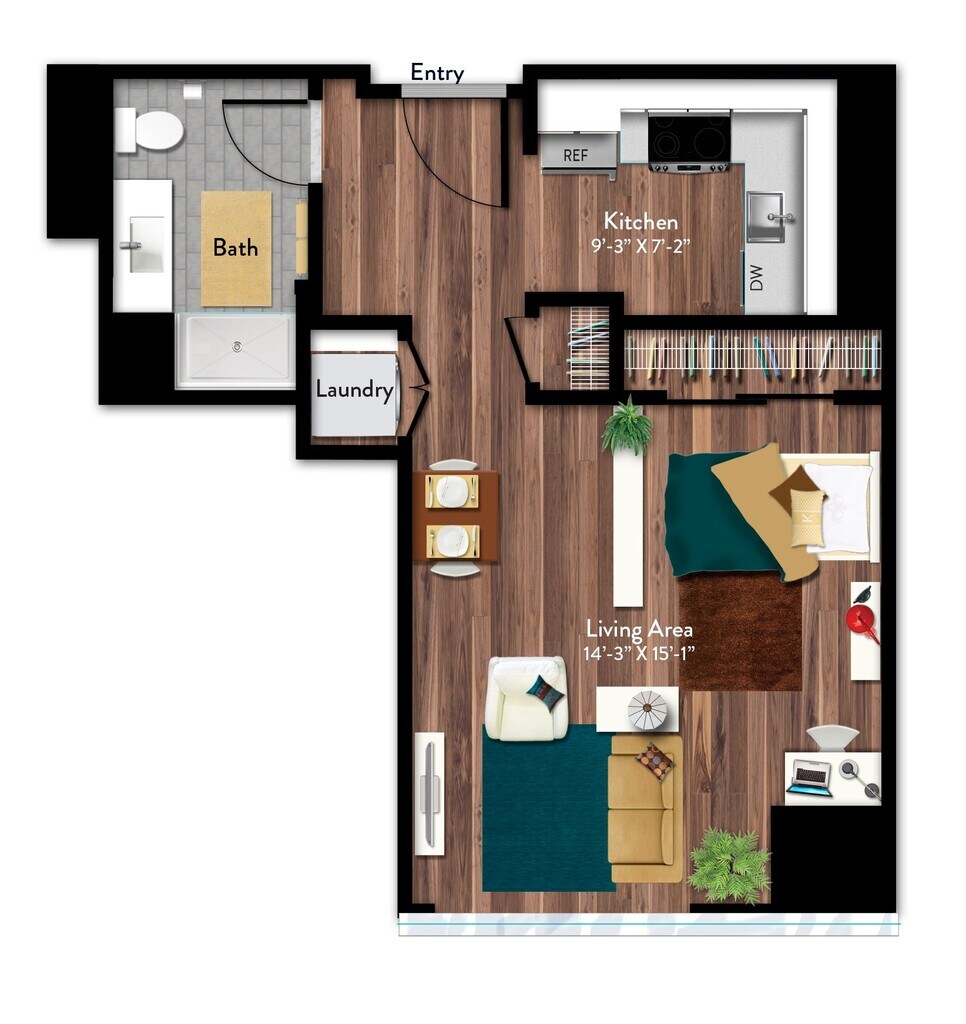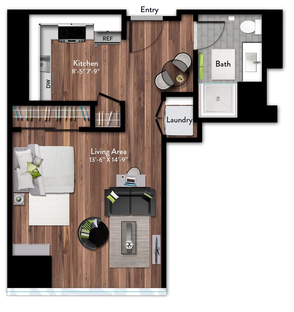 Studio, 1 Bath, 468 sq ftAvailable NowModel Gallery