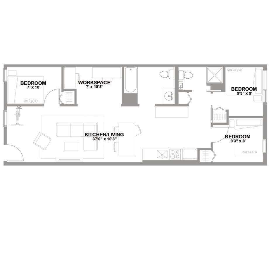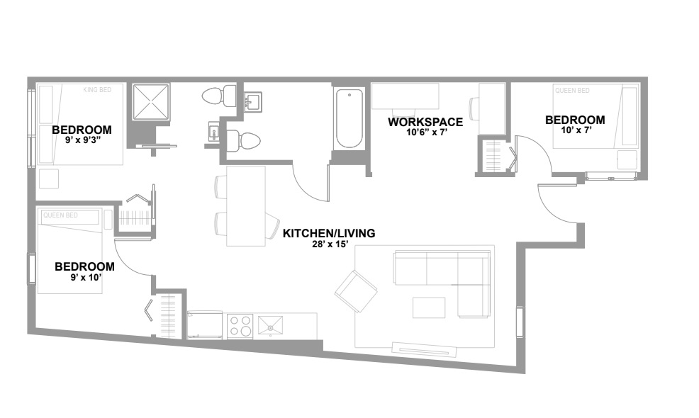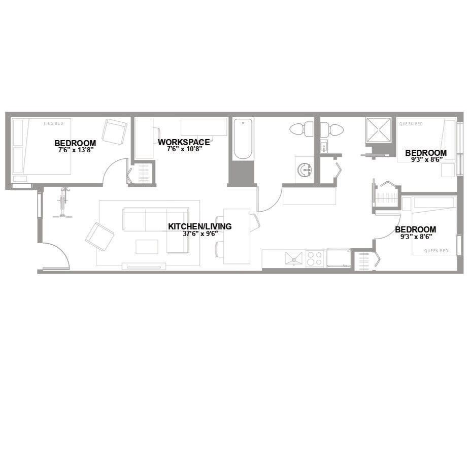 Apartment Model: 3 Bed 2 Bath K3 Bedroom, 2 Bath, 1178 sq ftUnavailable![]() - 3 Bed 2 Bath K - Floorplan 1