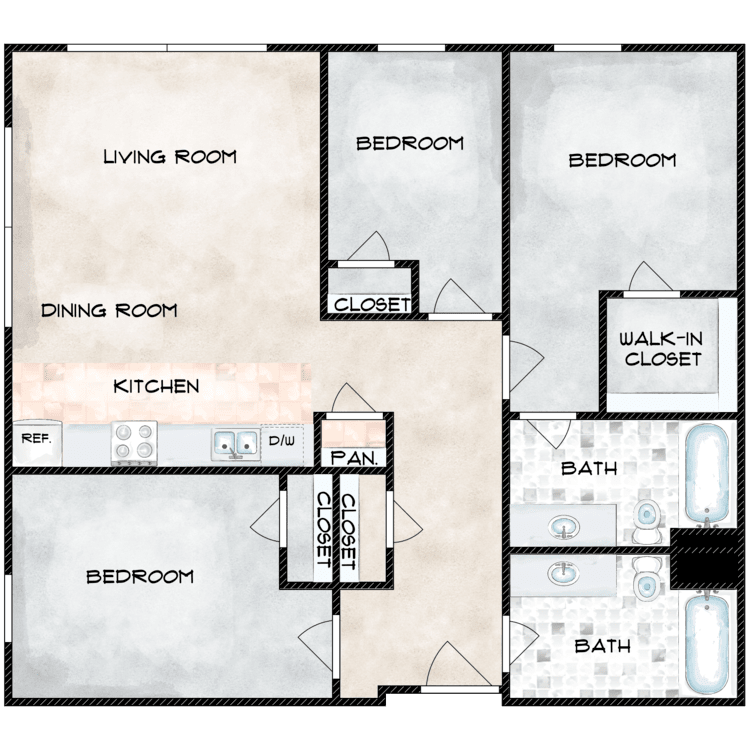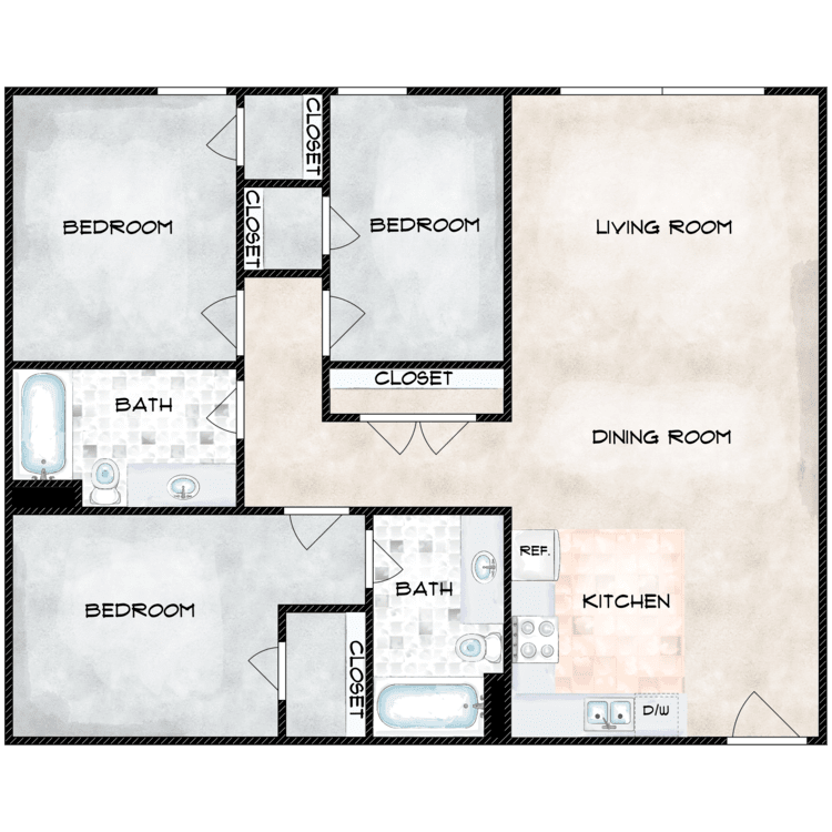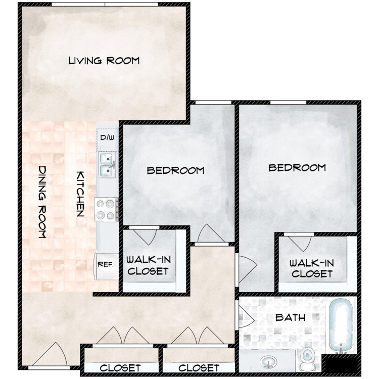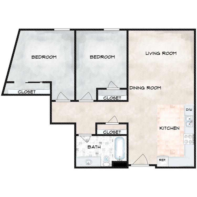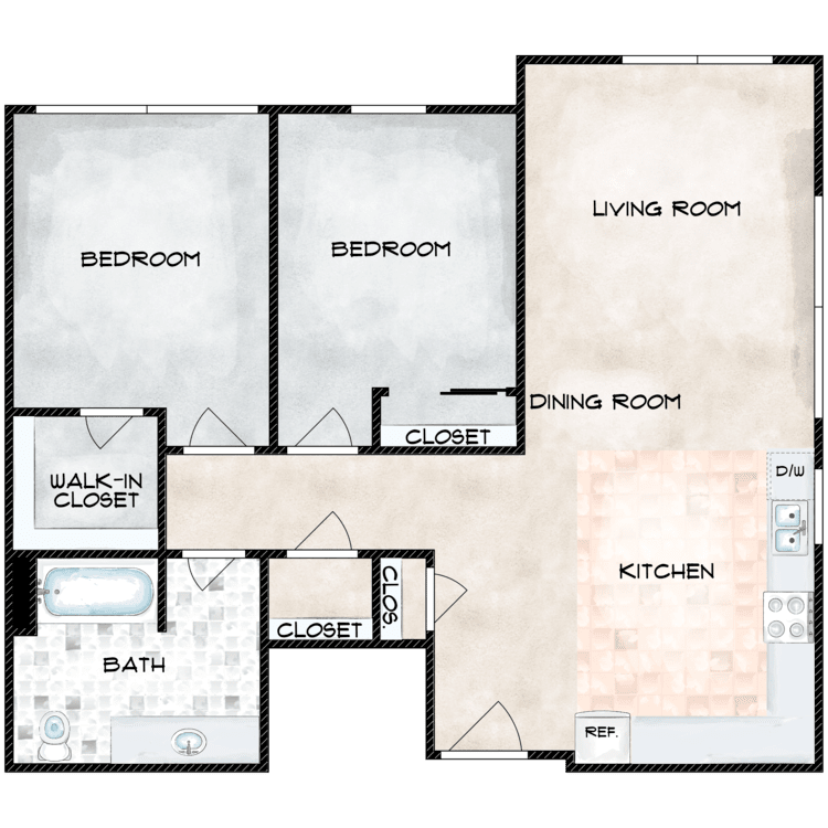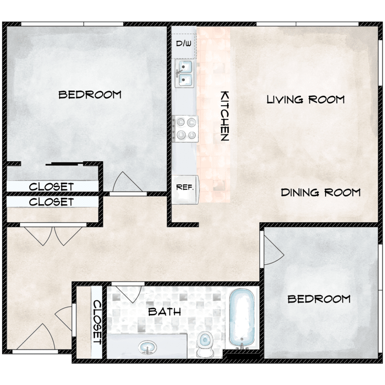 2 Beds, 1 Bath, 1026 sq ftAvailable NowModel Gallery