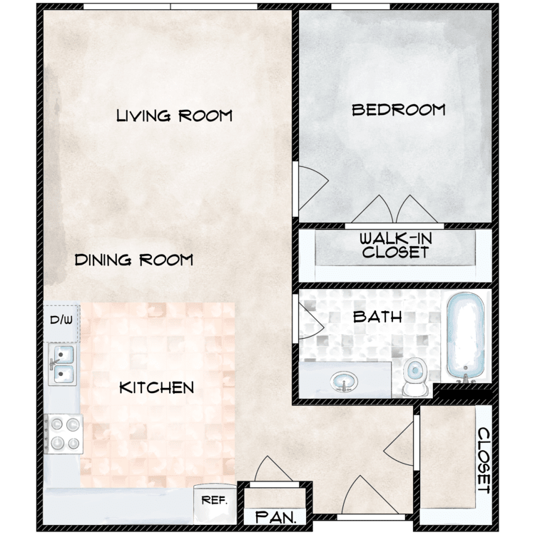 Studio, 1 Bath, 330 sq ftModel Gallery