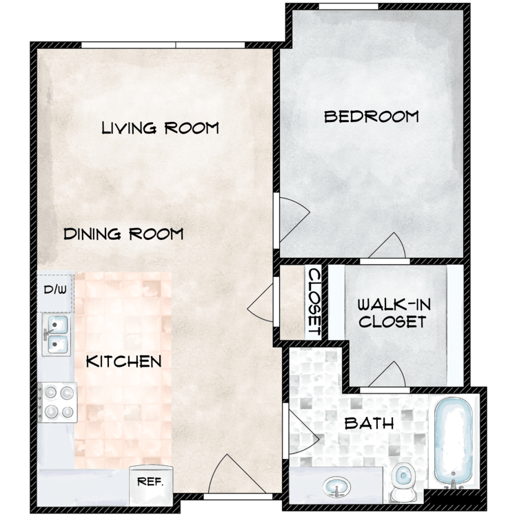 Studio, 1 Bath, 374 sq ftModel Gallery