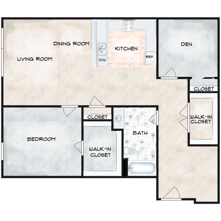 1 Bed, 1 Bath, 621 sq ftModel Gallery