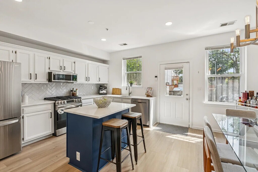 Beautifully renovated end-unit rowhome with 2+ private off-street parking spaces! This 3-bedroom, 2.5-bath home in historic LeDroit Park blends modern comfort with timeless character. Offering nearly 1,300 square feet of thoughtfully designed living space, a private landscaped backyard, and rare parking private parking, this home has it all. The main level features a bright living room with a bay window and a sun-filled kitchen boasting stainless steel appliances, abundant cabinetry, and an island with seating that flows seamlessly into the dining area—perfect for daily living or entertaining. A stylish powder room and laundry closet with new W/D complete the first floor. Upstairs, the spacious primary suite is your personal retreat, with a sitting area, large walk-in closet, and a renovated en-suite bath with sleek finishes. Two additional bedrooms share a second updated full bathroom, providing flexible space for guests or work-from-home. Step outside to your private oasis: a fully fenced yard with a mix of lush landscaping and hardscaping, plus direct access to convenient reserved parking. Situated just blocks from U Street, Shaw, and Bloomingdale, this home offers easy access to top restaurants, bars, and cultural destinations, including The Red Hen, Right Proper Brewing, the Howard Theatre, and 9:30 Club. Stroll nearby parks and tree-lined streets, or hop on the Shaw/Howard Metro for quick city access. Historic charm meets modern convenience in one of D.C.’s most vibrant neighborhoods. Don't miss this one!