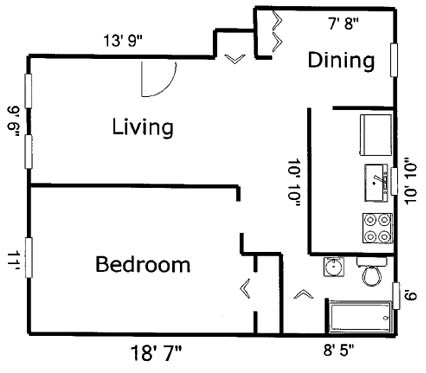 Junior 1 Bedroom - Floorplan 1 1 Bedroom