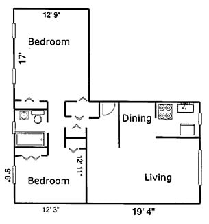 1 Bedroom - Floorplan 1 2 Bedrooms