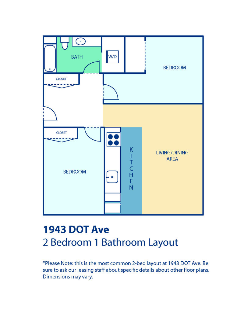 Studio to 2 Bedroom Apartments at 1943 DOT Ave currently range from $1,995 to $3,245