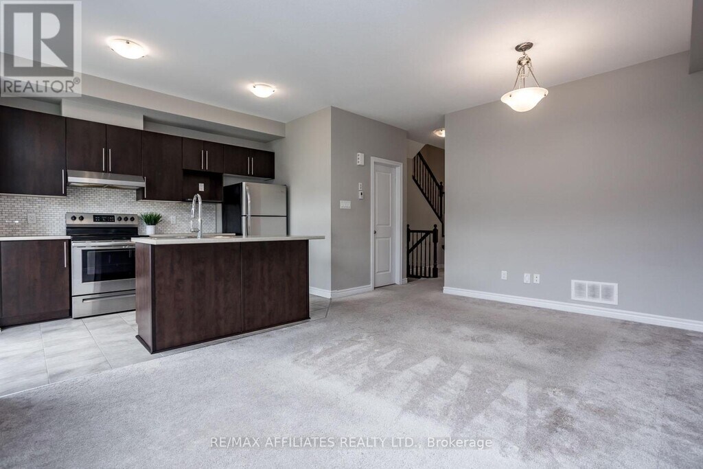 Welcome to this modern townhome in the highly sought-after Potter's Key community,just steps from amenities,schools,parks,and convenient highway access. The main floor features 9 ft ceilings,large windows,and contemporary grey tones that create a bright and inviting atmosphere. The open-concept kitchen is equipped with stainless steel appliances,a stylish tile backsplash,a breakfast bar,and modern grey tile flooring. Upstairs,the spacious primary bedroom offers a walk-in closet and a 4-piece ensuite,complemented by two additional generous bedrooms and a full bathroom. The fully finished basement provides a bright family room with large windows,ample storage,and a dedicated laundry area. Partially Fenced- PVC. Ideally located within walking distance to restaurants,LCBO,and St. Stephen Elementary School. 24 HOUR IRREVOCABLE ON ALL OFFERS (id:52069) ID#: 1915121
