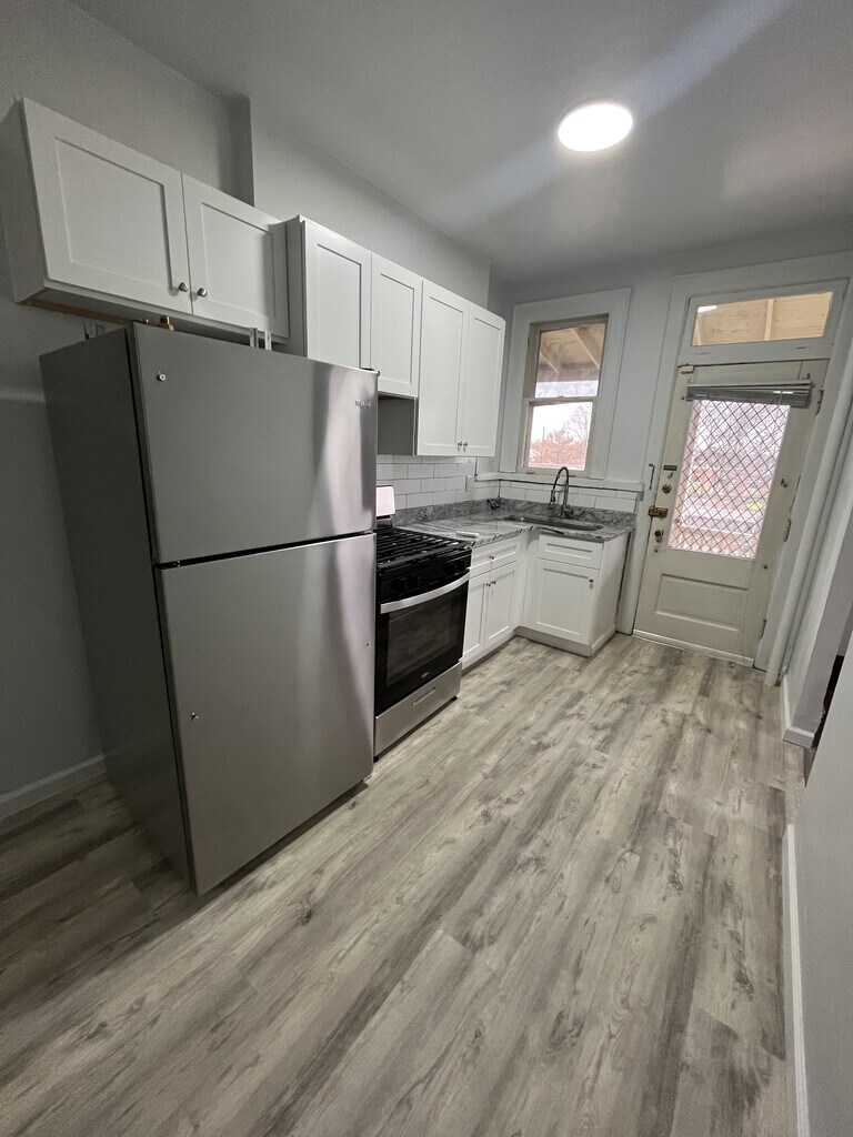 Welcome home to this renovated 2 bedroom, 2 bathroom second floor flat in Olde Town East's historic district. Beautiful original hardwood floors flow throughout the 1,200 square feet of living space, complimented by freshly painted walls and large windows that let in ample natural light. The kitchen has been completely updated with crisp white shaker cabinets, granite counter tops, and stainless steel appliances. Ideally situated just steps away from Franklin Park and the lively East Market's top-rated food scene, 196 Miller Ave allows you to enjoy urban living at its best. With one off-street parking spot included and a covered garage space available, you will love the convenience and walkability of this neighborhood. Whether you're heading to the park, market, or just strolling the charming tree-lined streets, this flat offers an affordable opportunity to embrace the Olde Town East lifestyle Heating and cooling is from zonal min-split systems