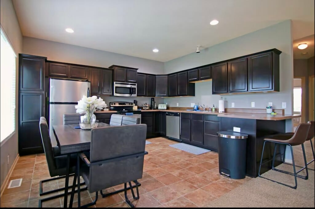 Fully Furnished! Lovely 3 bedroom 2 bathroom 1/2 duplex in a quiet and safe neighborhood. Large kitchen and table that seats 6. Comfortable living room with sleeper sofa & deck off of the living room. Large Main bedroom with king bed, large tv and walk in closet & attached bathroom. Second bedroom is also upstairs with queen bed and large tv. Downstairs is a living room area with another tv, washer dryer and a 3rd bedroom. Attached garage. Great location ! Furnished rental, utilities included, renters insurance required