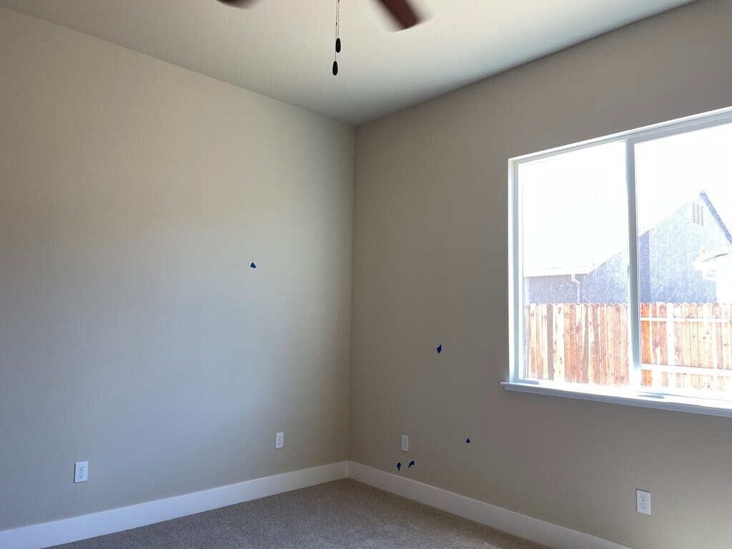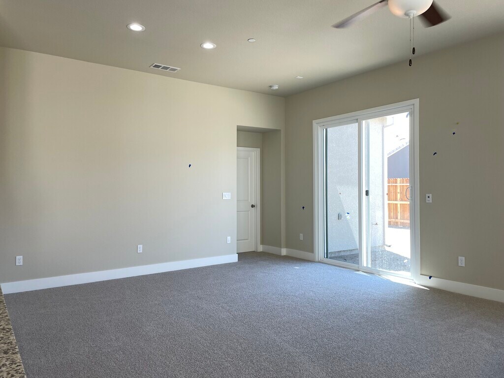 Brand new home with new appliances including washer, dryer and refrigerator. Gourmet kitchen with granite countertops. Solar panels installed on roof. Security alarm and remote controlled thermostat. Spacious yard. EV charger in garage. Garage fits two cars. Home is in good school area in a newly developed residential zone with good schools.