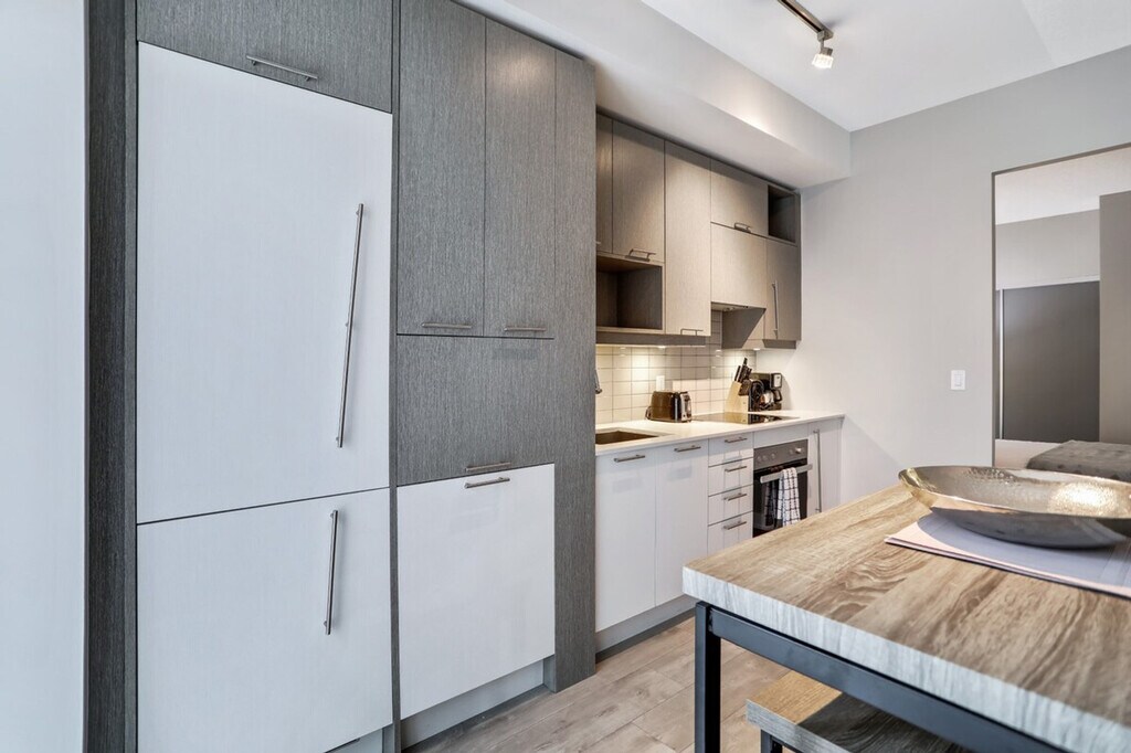 Experience the heart of downtown living with this clean and modern 1-bedroom condo on Nelson St. Feel at home with a fully equipped kitchen and in-unit laundry, complemented by high-speed 2 Gbps unlimited fibre internet and a smart TV. The separate bedroom features a queen bed, and there's a dedicated workspace with a desk and chair for your convenience. The condo boasts a state-of-the-art fitness facility and a rooftop terrace, offering a perfect blend of comfort and luxury. With amenities like groceries and dry cleaning at your doorstep, you'll have everything you need within reach. Professionally managed with a 30-night minimum stay requirement, ensuring a seamless living experience. Located less than 5 minutes from Osgoode Subway, hospitals, and the Financial District, this condo offers unparalleled access to the city's key destinations. The dedicated workspace includes a desk and chair, ideal for remote work. A laptop computer is not included.