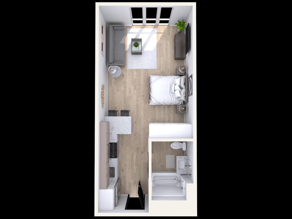 Studio, 1 Bath, 277 sq ftAvailable NowModel Gallery
