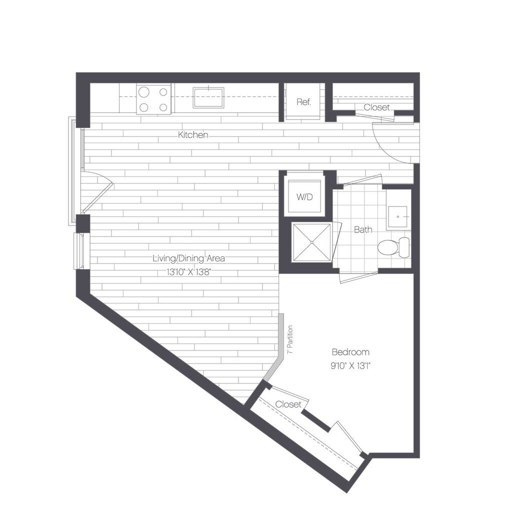 Studio, 1 Bath, 533 sq ftAvailable NowModel Gallery