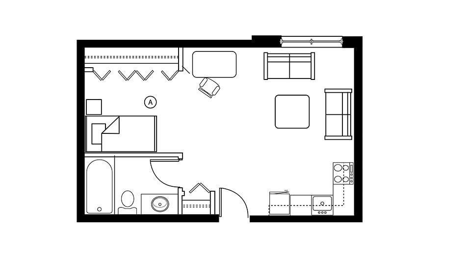 Studio - Floorplan 1 Apartment Unit: PrivateApartment Model: StudioStudio, 1 Bath, sq ftAvailable NowBachelor