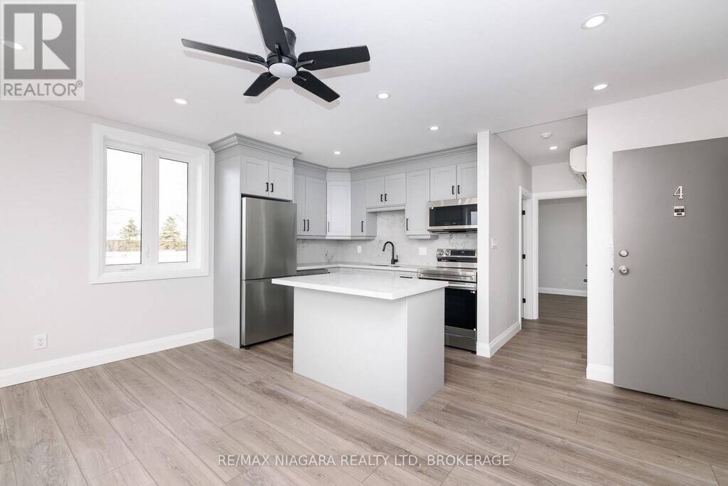Unit #4 FOR LEASE: Ideally located across from the Niagara River,this well-maintained apartment offers scenic views and a welcoming sense of community within a quiet 15-unit building-perfect for retirees or those seeking a relaxed lifestyle. This one-bedroom unit was recently updated and features a bright living space,a functional kitchen complete with pantry,centre island,fridge,stove,dishwasher and microwave,and ample in-unit storage. The bathroom includes a 3-piece with glass and tile shower,and the layout is designed for comfortable,easy living. Residents benefit from shared,coin-operated laundry on each floor,as well as one outdoor parking space included. Additional options are available,including indoor parking or storage rental for $100/month each. The building also features an elevator and a secure lobby with an entry panel system,allowing tenants to conveniently grant access to guests. Outside,enjoy a fenced common grass area with covered BBQ deck and firepit spaces - a great place to relax,connect with neighbours,and spend time with family while watching the grandchildren play. Worry-free living without having to cut the lawn or shovel snow. Enjoy beautiful views of the Niagara River year-round-watch boats pass by in the warmer months and take in the dramatic ice formations in winter. The nearby Niagara River Parkway Trail connects you to the revitalized Downtown Bridgeburg,with its shops,cafés,and services,and extends north to Niagara Falls and Niagara-on-the-Lake,or south to connect with the Friendship Trail toward Port Colborne. (id:52069) ID#: 1986766