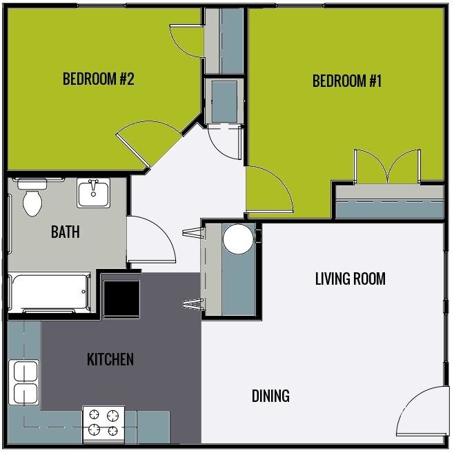 2 Beds, 1 Bath, 724-760 sq ftModel Gallery