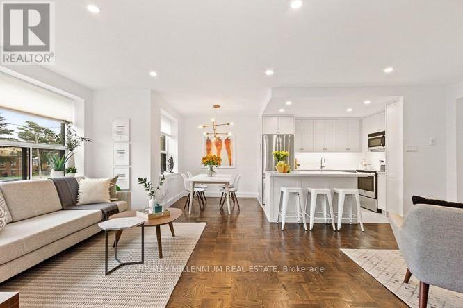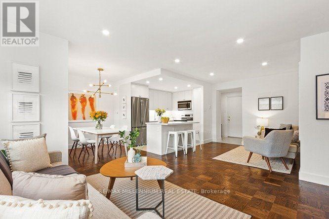 Beautifully renovated 945 sq ft,2-bedroom Upper Forest Hill corner suite on the first floor,featuring a completely open concept design. This impressive unit features significant improvements,such as a modern kitchen with quartz countertops,smart/automated blinds in the living room and dining area,an upgraded bathroom,stainless steel appliances,and the convenience of ensuite laundry.Custom built-in closet for extra storage in second bedroom. Spacious locker conveniently located on the same floor,just across the hall. Short walk to the new Forest Hill LRT station. Enjoy the convenience of nearby shops and restaurants,and explore the Kay Gardiner Beltline Walk/Bike Trail. With easy access to major highways and transit routes,commuting to work or school has never been easier (id:52069) ID#: 1983899