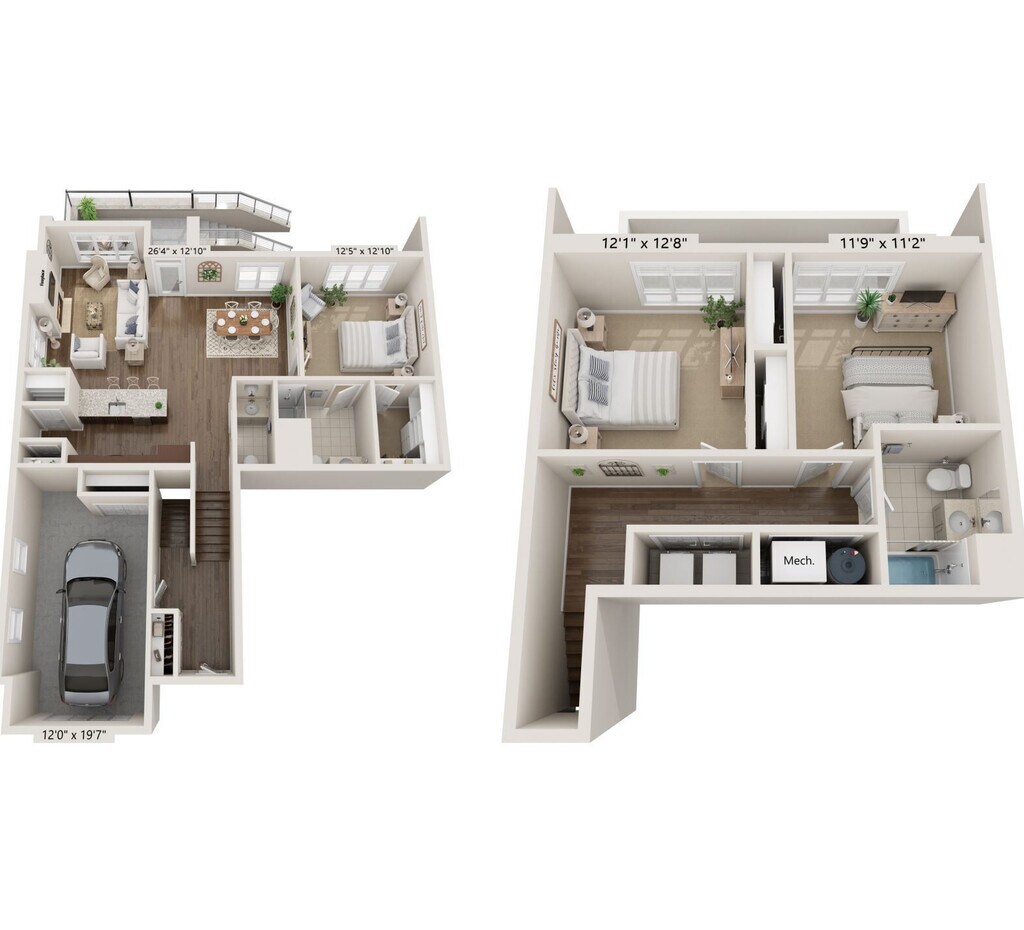 2 Beds, 2 Baths, 1194 sq ftModel Gallery