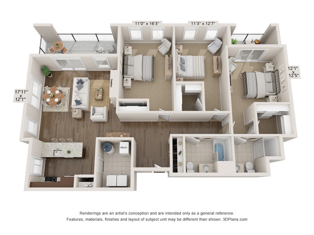 Apartment Model: 3Bh3 Bedroom, 2.5 Bath, 1582 sq ftAvailable Now![]()