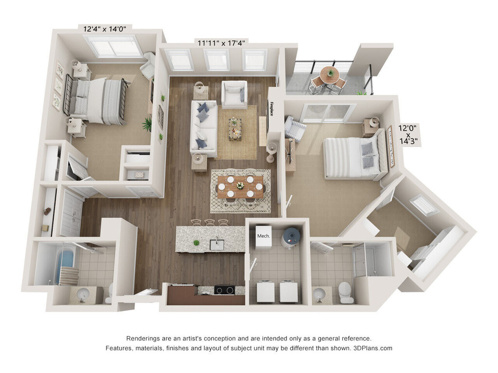 2 Beds, 2 Baths, 1377 sq ftLargest 2 BedroomThis is the largest 2 Bedroom at this PropertyModel Gallery
