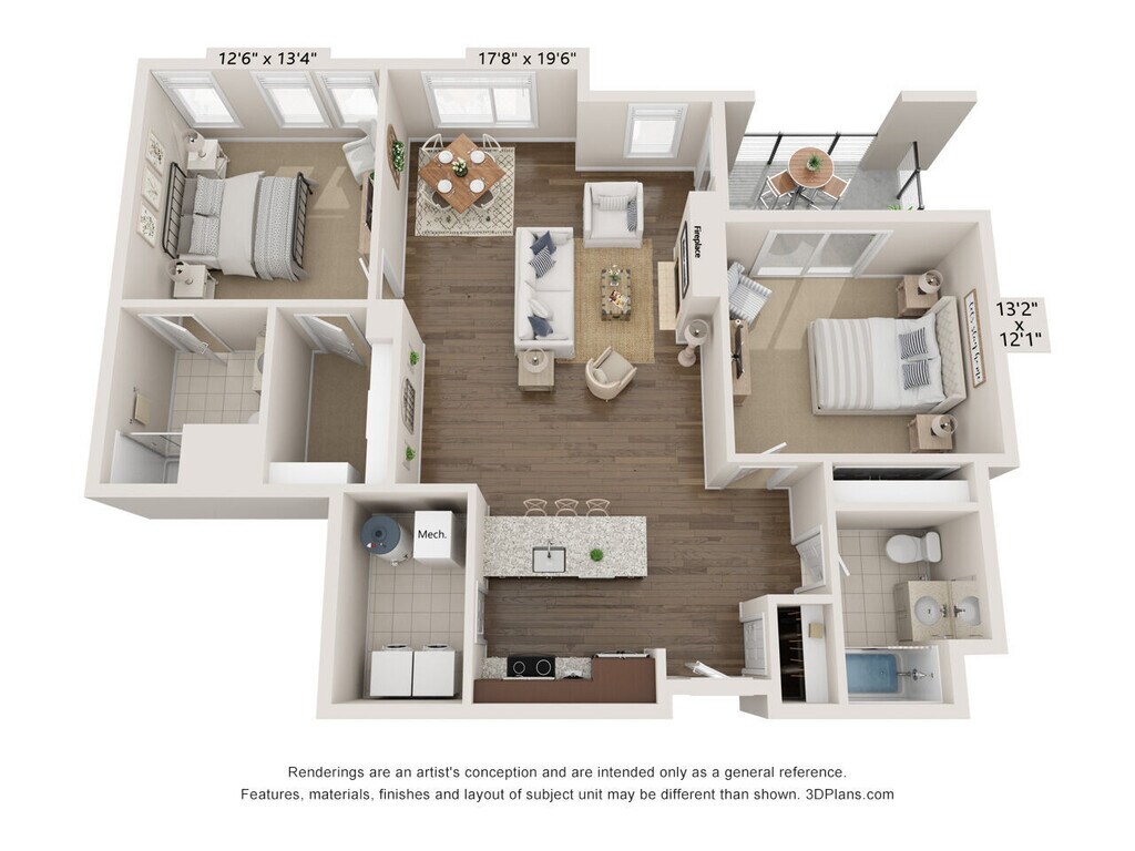 3Bh - Floorplan 1 Apartment Unit: 106Apartment Model: 3Bh3 Bedroom, 2.5 Bath, 1582 sq ftAvailable NowFloorplan 3Ch