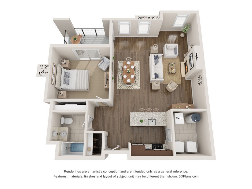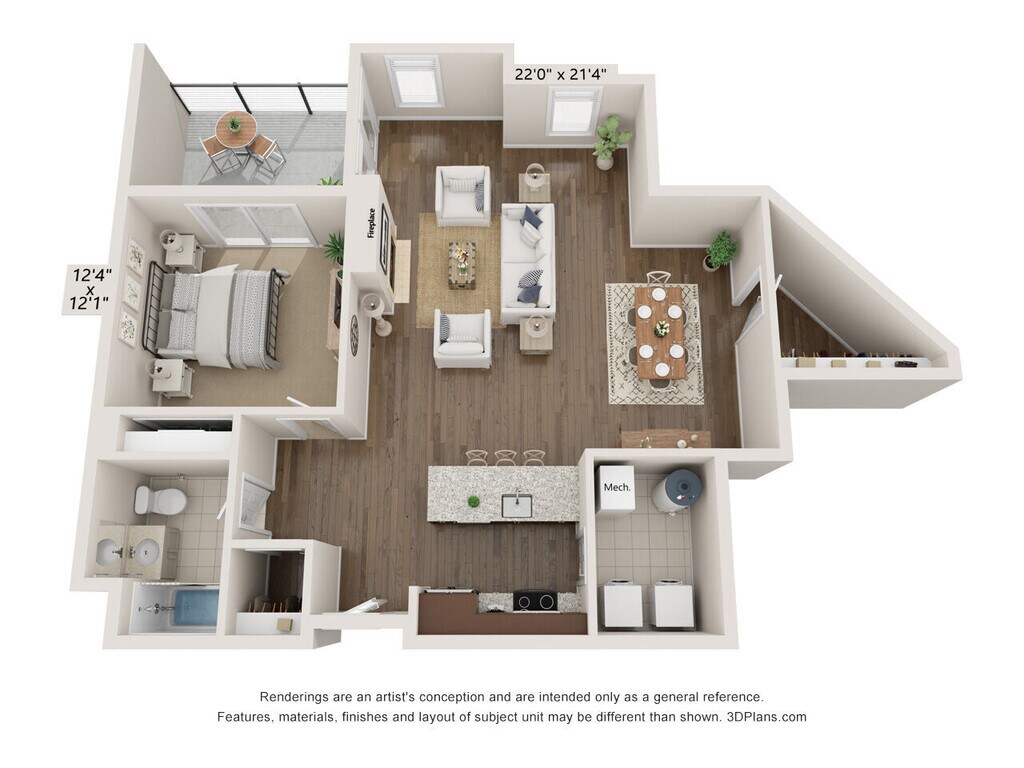 1 Bed, 1 Bath, 757 sq ftModel Gallery