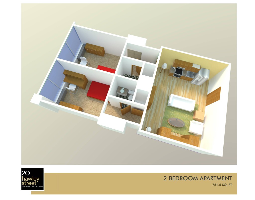 October 10, 2015Hawley has a very pretty exterior but with a hefty price tag. The one big reason why decided to sign was because of the large windows in every bedroom, however besides that and a personal bathroom, Hawley lacks in many other components. One annoying part is the extra fee for telecommunication and parking however it is underground, so I guess it's reasonable. Also the fire alarm is very easily set off, which means at least two fire drills a week.Review from Apartments.com