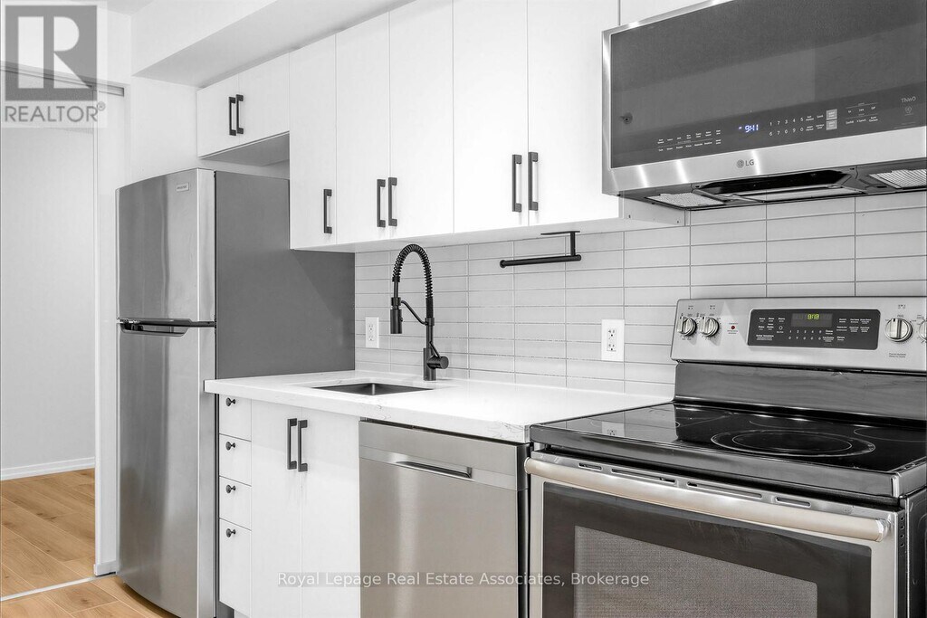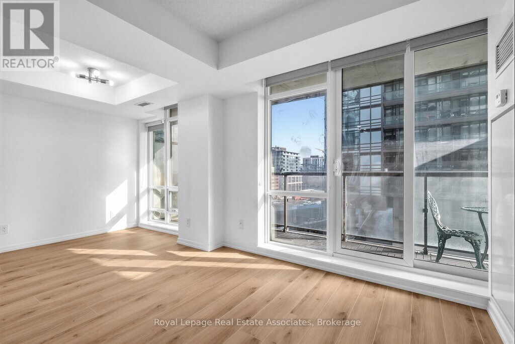 Welcome to Fuzion Condos in the heart of vibrant Liberty Village. This beautifully renovated 1 bedroom plus den delivers modern style with smart functionality,featuring a brand new sleek black and white kitchen,new laminate flooring,new appliances and fresh paint throughout. The spacious bedroom is framed by sliding glass doors that flood the space with natural light,while the versatile den offers the perfect work from home setup or guest retreat. Step out onto your impressive 22 foot balcony and take in stunning sunrise views. A thoughtfully designed semi ensuite bathroom offers convenient access from both the bedroom and den,ideal for everyday living and effortless entertaining. Residents enjoy hotel inspired amenities including a fully equipped gym,yoga studio,library,party room,rooftop terrace,guest suites,visitor parking,and EV charging stations. Just steps from trendy shops,the LCBO,grocery stores,cafés,fitness studios and public transit,this is Liberty Village living at its finest. Only minutes from the Exhibition Grounds and BMO Field,with the World Cup excitement right at your doorstep this summer! (id:63800) ID#: 1932899