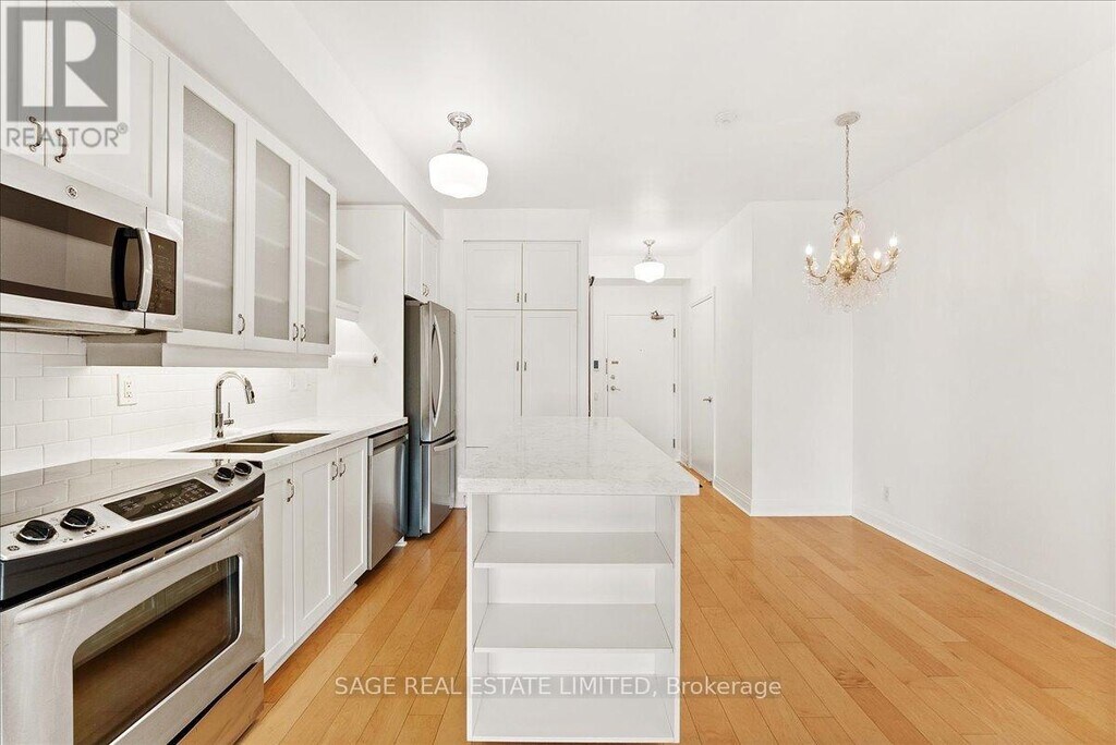 Welcome to one of Summerhill's most sought-after addresses,an elegant and wonderfully bright one-bedroom suite that offers exceptional use of space,thoughtful design,and effortless sophistication. Regarded as one of the building's finest 1 bedroom layouts,the home offers a composition that lives well beyond its footprint. Freshly painted,crisp white walls and light hardwoods create a gallery-like backdrop for art and décor,while a cohesive lighting installation reinforces a clean,modern narrative. A rare gas fireplace,framed by custom built-ins,elevates the living room creating an intimate moment for books,collected objects,and intimate evenings by the fire.Spanning the full width of the suite,a covered balcony extends the living space outdoors-generous enough to accommodate both a sectional and dining,and sheltered so you can sit and enjoy the sunshine or the calming patter of rain. Inside,a large island and dedicated dining nook invite easy entertaining,while a marble-clad bath,functioning as both an ensuite and cleverly partitioned guest powder room,adds hotel-like versatility. A walk-through primary closet and a proper laundry room with pantry-style storage bring a level of practicality nearly unheard of in a one-bedroom residence. Marble counters,smooth ceilings,stainless steel appliances,custom window treatments,and layered,considered finishes complete the home,timeless,restrained,and quietly elevated.Set just steps from Summerhill and Rosedale stations,you are moments from the neighbourhood's best: independent cafés,beloved bakeries,specialty grocers,wine merchants,boutiques,and iconic dining. With an effortless commute to the financial core and entertainment districts,this is a connected city living with all the charm of a storied Toronto enclave. (id:52069) ID#: 1914659