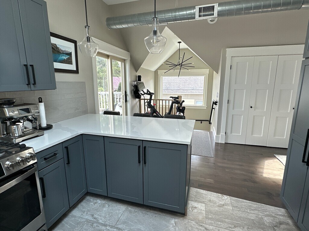 Newly built spacious two-bedroom unit near WPI/Elm Park. Brand new apartment completed in 2023 featuring high-end amenities including: central air/heat, hardwood maple floors throughout, new windows with light-filtering shades (larger windows have remote-controlled blinds), full kitchen with Quartz countertops/peninsula, GE Profile gas range and microwave, Bosch dishwasher and 36" French door refrigerator, in-unit GE Profile washer/dryer, tile shower with glass, private balcony deck with views of Worcester skyline, off-street parking, private fenced in backyard, spray-foam insulation above and sound-deadening insulation below for energy efficiency/privacy. Unit features larger master bedroom with full size closet and medium size bedroom with smaller walk-in closet that easily doubles as an excellent space for a home office. Open-concept living room with high-ceilings throughout. Two-car garage with openers available for additional monthly fee.