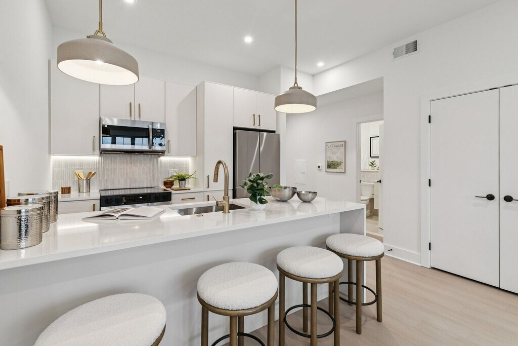 20 West is a luxury community featuring 76 thoughtfully designed residences, ideally located at the intersection of West Mount Airy and Chestnut Hill—two of Philadelphia’s most established and scenic neighborhoods. The building offers an exceptional collection of amenities, including a fully furnished lobby, state-of-the-art fitness center, on-site parking, a 4-stop elevator, dedicated dog run, secure mail and package room, bike storage, and the convenience of an on-site trash chute. Inside each residence, contemporary interiors blend modern sophistication with the timeless character of the surrounding neighborhood. Apartment homes are outfitted with Samsung stainless steel appliances, classic shaker-style cabinetry, stunning waterfall quartz countertops and backsplashes, Latch smart access, smart thermostats, custom closet systems, built-in mudrooms, and spacious, open layouts designed for both style and functionality. Perfectly positioned near the acclaimed restaurants, cafés, and boutiques along Germantown Avenue, 20 West also provides easy access to nearby trails and outdoor recreation at Wissahickon Valley Park. Residents are less than an eight-minute walk from two major SEPTA Regional Rail stations, offering direct access to Center City in under 25 minutes, as well as a convenient commute to suburban destinations including King of Prussia, Conshohocken, Bala Cynwyd, and communities throughout the Main Line. At 20 West, residents will enjoy the ideal balance of luxury, neighborhood charm, and everyday convenience.