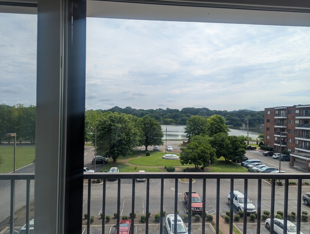 This property at 200 Sanders Ferry Rd features 2 bedrooms and 2 bathrooms with a total of 1,190 square feet. The living room offers ample space for relaxation and is designed for easy furniture arrangement and amazing lake view. One bedroom easily accomodates a king-sized bed, and the other provides sufficient room for a queen-sized bed. Each room includes closet space plus lake view. The open floor plan kitchen with island includes a dishwasher and is adjacent to the dining area, facilitating convenient meal preparation and dining. Additional amenities include air conditioning, an in-unit washer and dryer, and smoke-free living. The building is equipped with an elevator for easy access to all floors. The exterior features a well-maintained facade and surrounding landscaping.
