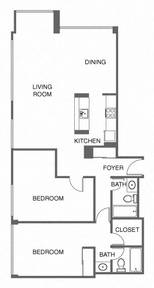 Apartment Model: Renovated 2 Bed, 2 Bath2 Bedroom, 2 Bath, sq ftAvailable NowFloor plans are artist's rendering. All dimensions are approximate. Actual product and specifications may vary in dimension or detail. Not all features are available in every rental home. Prices and availability are subject to change. Base rent is based on monthly frequency. Additional fees may apply, such as but not limited to package delivery, trash, water, amenities, etc. Deposits vary. Please see a representative for details.