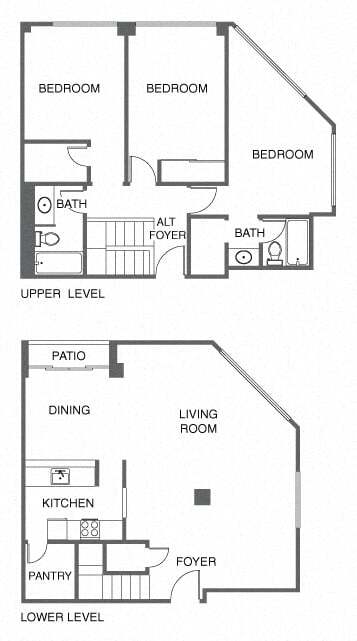 2 Bed, 2 Bath - Floorplan 1 3 Bedrooms
