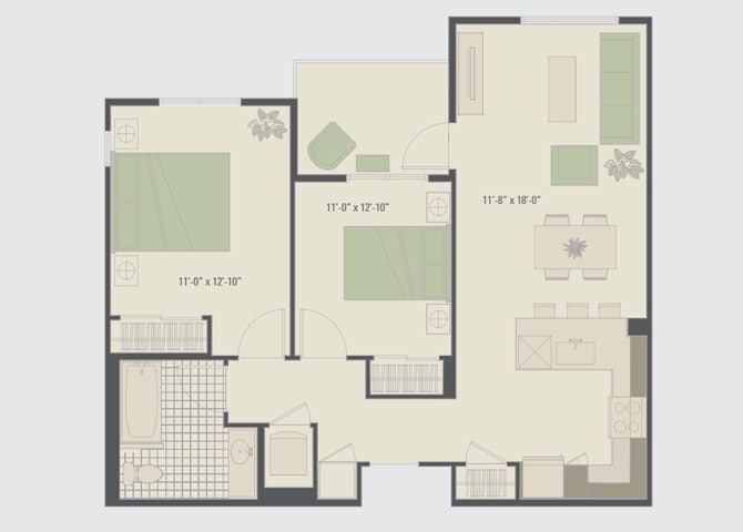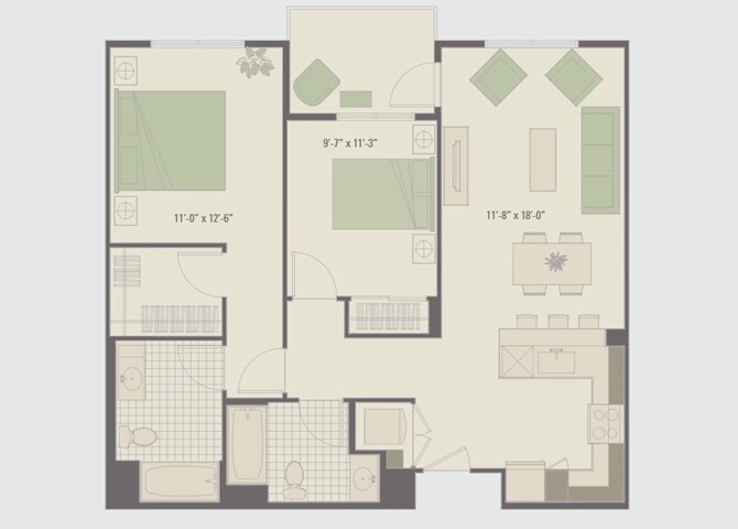 2 Beds, 1 Bath, 776-860 sq ftModel Gallery