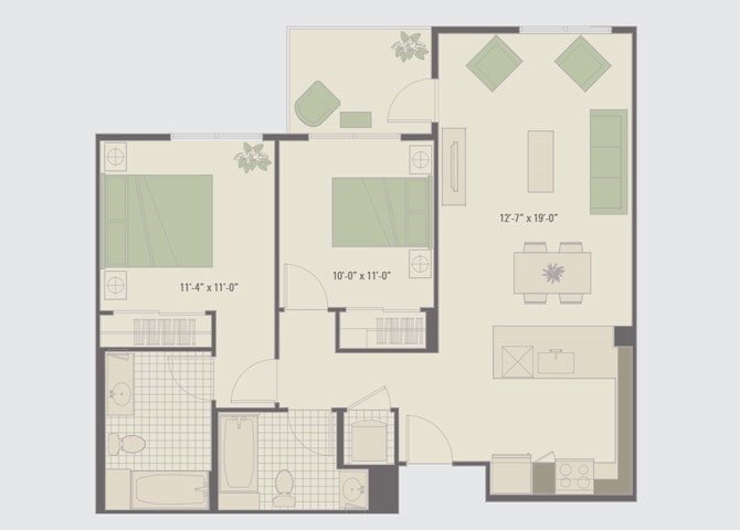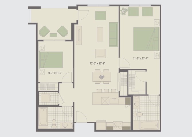 2 Beds, 2 Baths, 876-898 sq ftModel Gallery