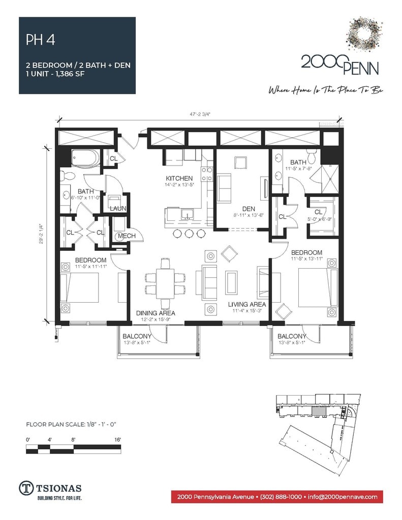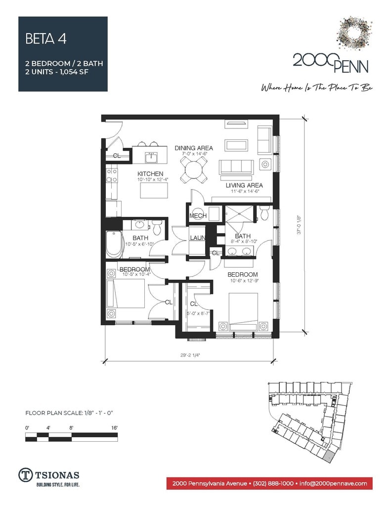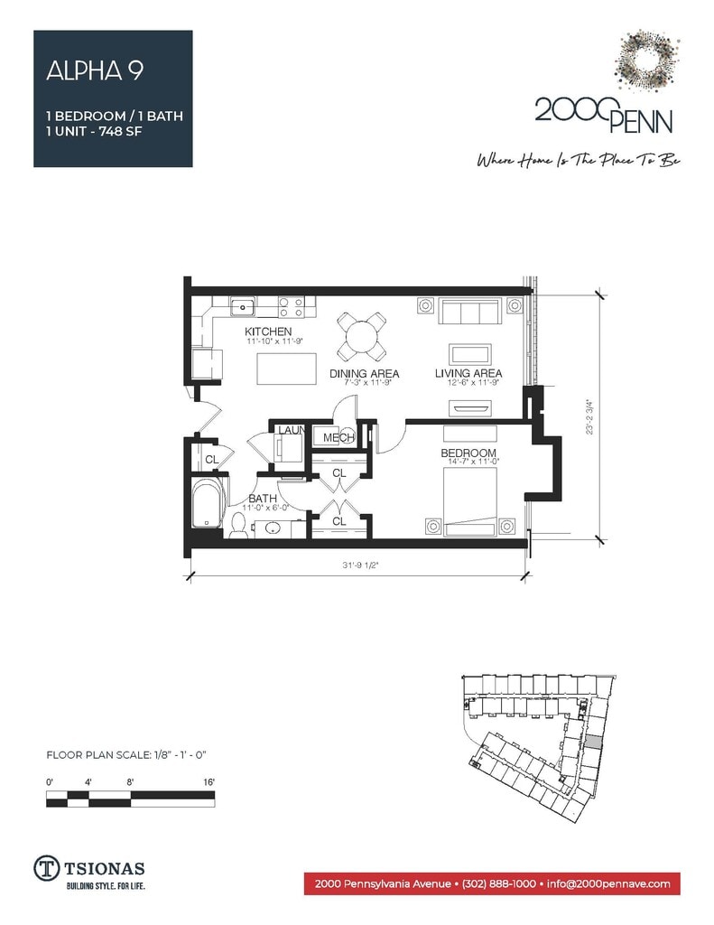 2000 Pennsylvania Avenue offers 1 to 2 Bedroom apartments starting from $2,100 and having 673–1,770 sq ft. Here is the current pricing and availability: