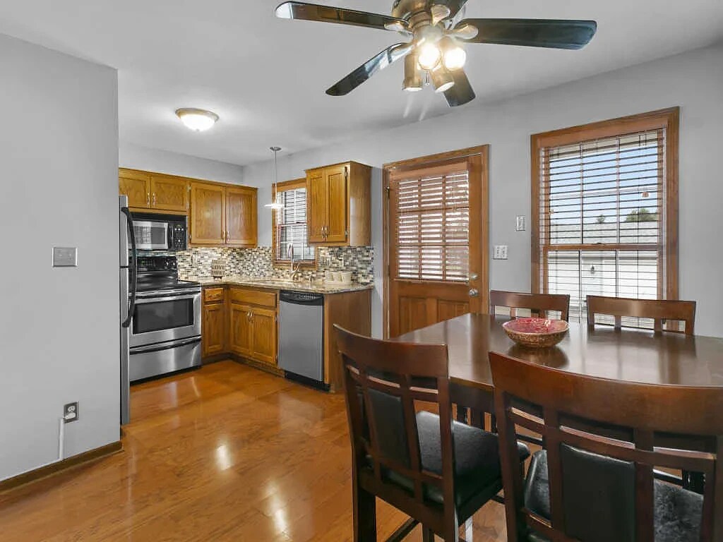 Safe neighborhood with Davids Park being 1 mile away for pets HOA property so no shoveling, grass cutting, trimming of bushes, etc 10 minutes from highway 94 and various lakes / parks New water heater, very hot water New Thermostat and AC unit also installed last year Plenty of storage space inside and in the garage Basement is furnished for entertainment or spare sleeping area Upstairs, main level, and basement all belong to the renter