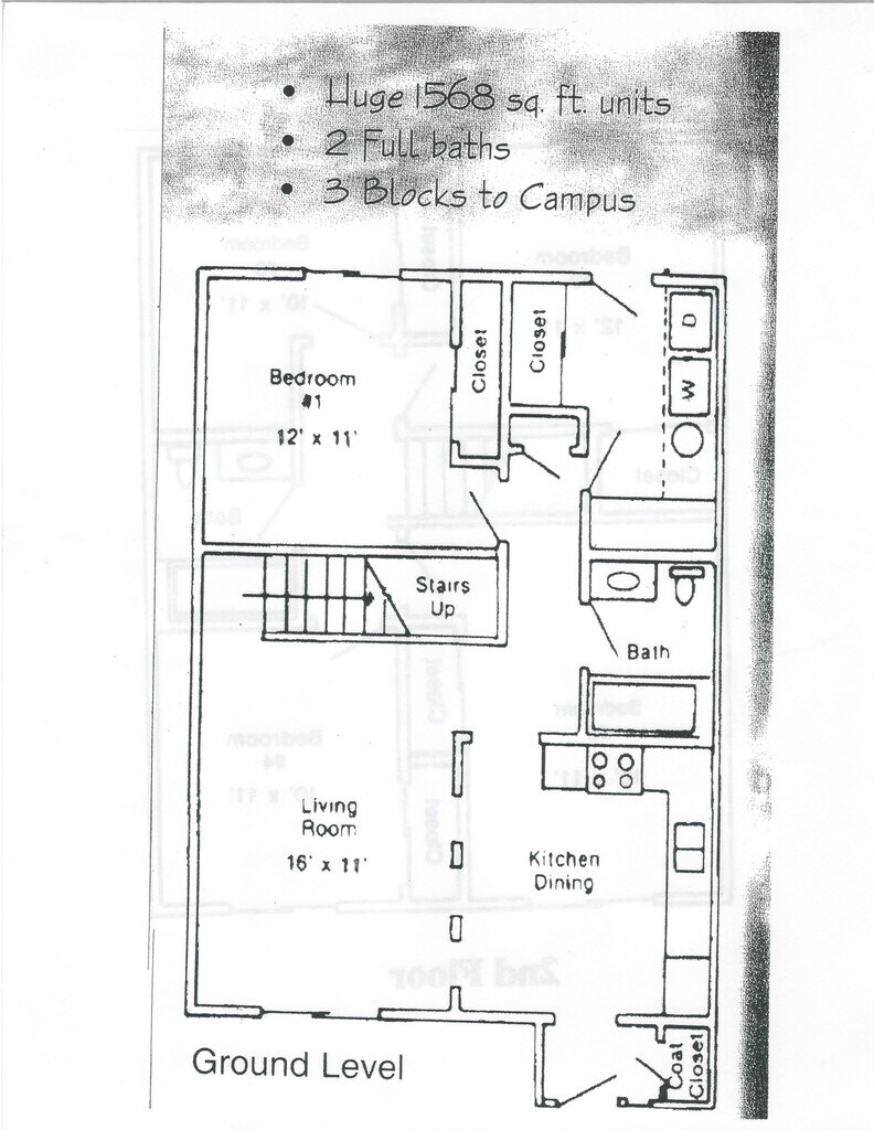 The townhouses can have 4 to 6 people. We offer 12 month leases @ $1700/month and 9 month leases for 5 tenants run $400 per person/month. 4 tenants run $475 a month/per person for 9 months. Summer is separate at a discounted rental rate, and/or storage for renewals or new leases. Water and electric is not included and runs $30 to $40 per person on the monthly average. Parking lot available with a $100 permit fee. Stove, fridge, dishwasher, NON coin-op washer/dryer located inside each townhouse. These are available for the 2026 year.