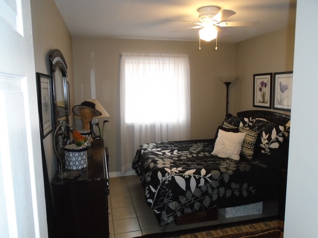 One bedroom apartment (900 sq. ft.), in a single story building of 11 apartments. All remodeled with new ceramic/wood floors throughout, new baths, and all new stainless steel appliances, (refrigerators, range/ovens, vents, sinks,) There are ceiling fans in the living room and bedroom. . No need for washer/dryer, laundromat available. RENT: $960 FOR 2 BEDROOM UNIT. 960.00 DEPOSIT.