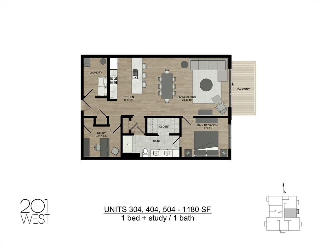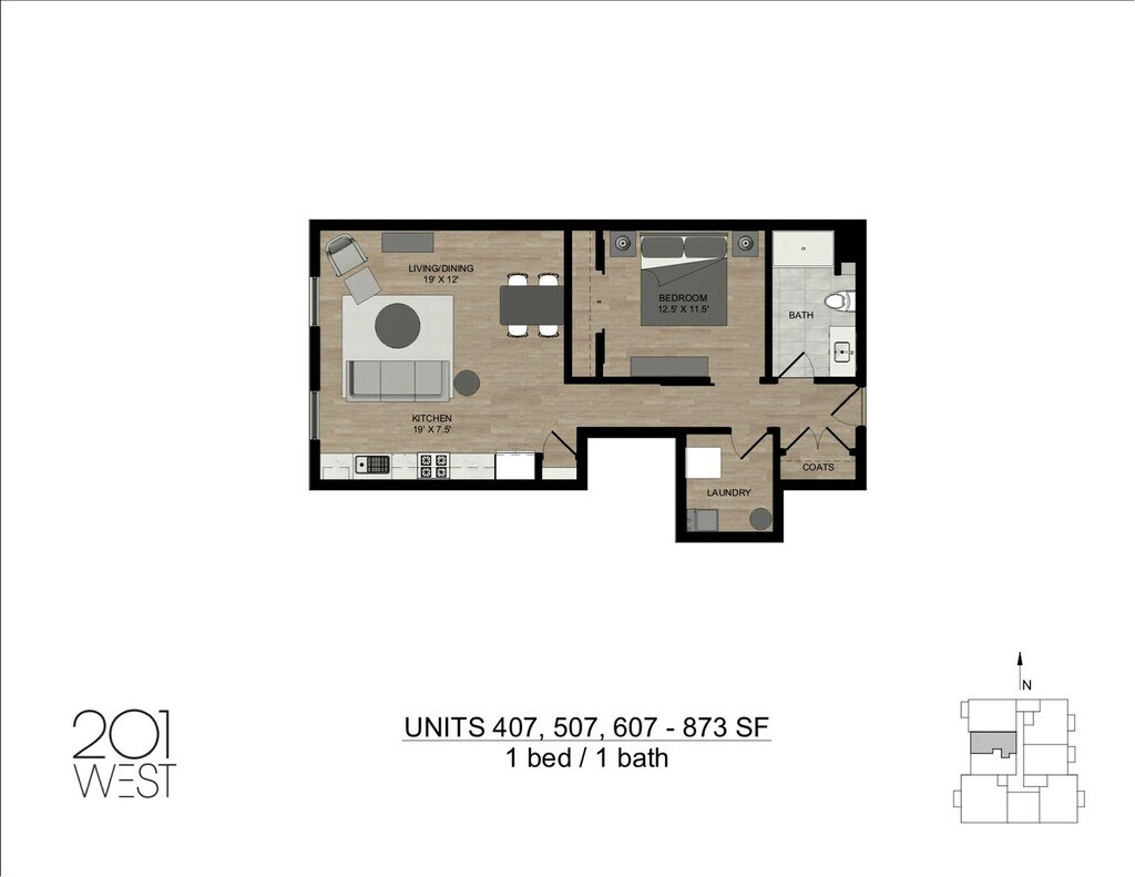 1 Bedrooms at 201 West currently start from $1,500. Call today for more info!