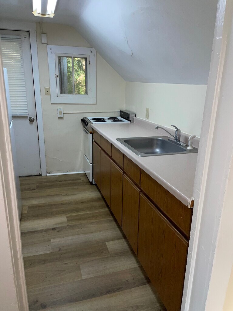 This is a studio unit on the second level in a duplex setting. The bedroom area is off the living room. Separate kitchen and bathroom. Updated LVP in living room. Partial heat (gas heat) included in rent. Tenant takes care of all other utilities, lawn care, and snow removal. Laundry on-site for tenant use and billed at $10/person/month. ? PET: may consider 1 cat or 1 dog under 20 lbs with monthly pet rent, additional deposit and requirements