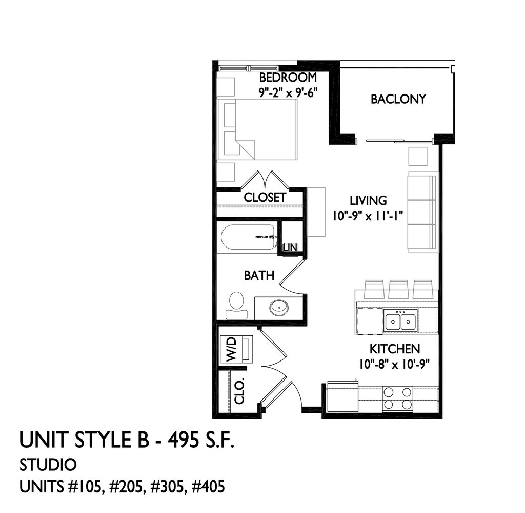 Apartment Model: StudioStudio, 1 Bath, 492 sq ftUnavailableFloorplansPhotos![]()
