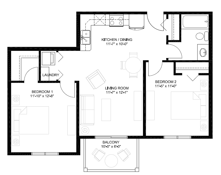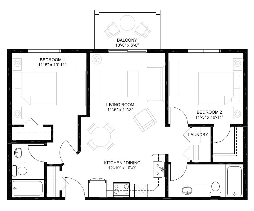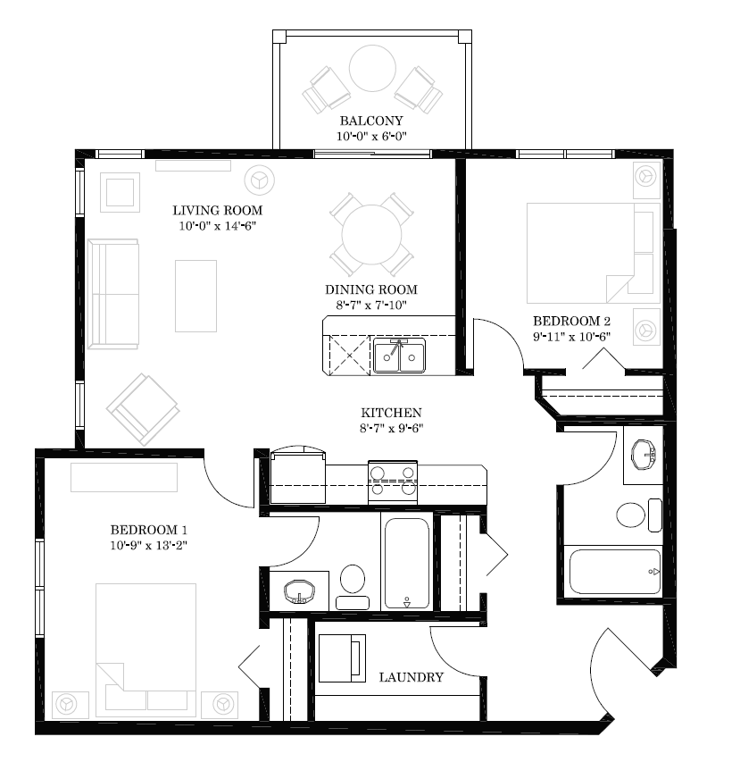 Layout C - 2B2B - Floorplan 10 Apartment Unit: 115Apartment Model: Layout C - 2B2B2 Bedroom, 2 Bath, 828 sq ftAvailable January 1, 2026Layout J - 2B2B