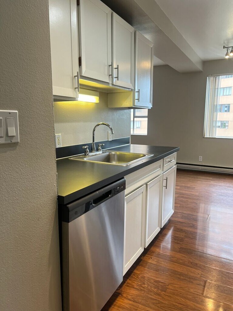 Welcome to #204 at the 2020 Building! This apartment boasts large windows spanning the length of the living and dining rooms, providing an abundance of natural light. The updated kitchen is a home chef's dream, featuring modern appliances and finishes. The living and dining areas are adorned with stylish LVP flooring, adding a touch of elegance to your everyday living. Step outside to your private balcony, a perfect spot for your morning coffee or evening relaxation. The building offers a range of amenities designed to enhance your lifestyle. Stay fit and active with our on-site fitness center, or enjoy the panoramic city views from our rooftop deck. For your convenience, the building also offers rentable storage, secure parking, and on-site laundry facilities. With a secure building system, you can rest assured knowing your home is safe. Experience the perfect blend of style, comfort, and convenience at the 2020 Building!
