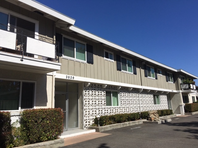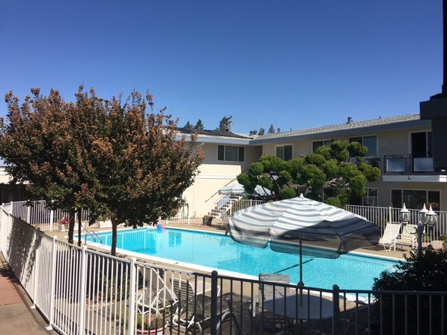 Cheerful balcony unit overlooking the sunny pool and garden. Beautiful interior complex one of the nicest on the street. Stop and compare, none better! Clean and quiet complex with lush interior landscaping, carport parking and storage, secure bicycle storage, swimming pool, and laundry facility available on site. The Twenty-Twenty California Street apartments is a small, family-owned, and managed 22-unit complex conveniently located just 4 miles to Stanford University, and 1 mile to CalTrain station. Conveniently located near many Silicon Valley tech companies, restaurants, shopping, Rengstorff Park, easy access to public transportation, and much more. No smoking on the premises (per Mtn.View smoking ordinance).