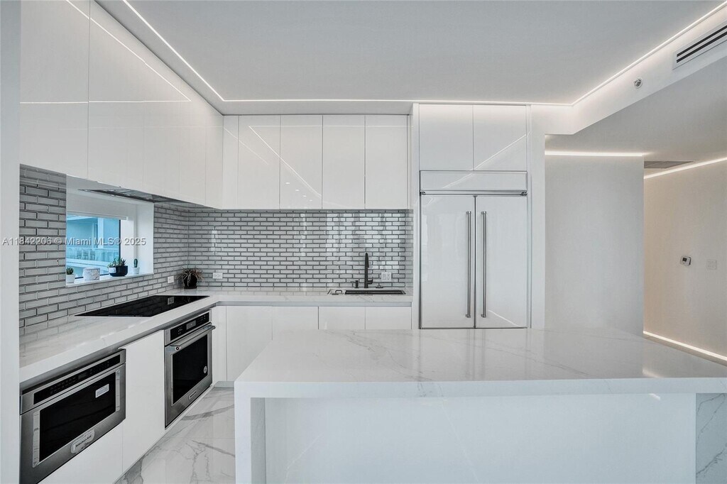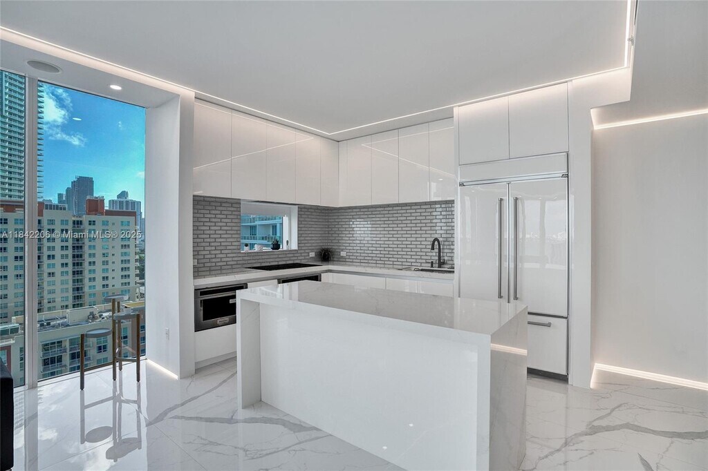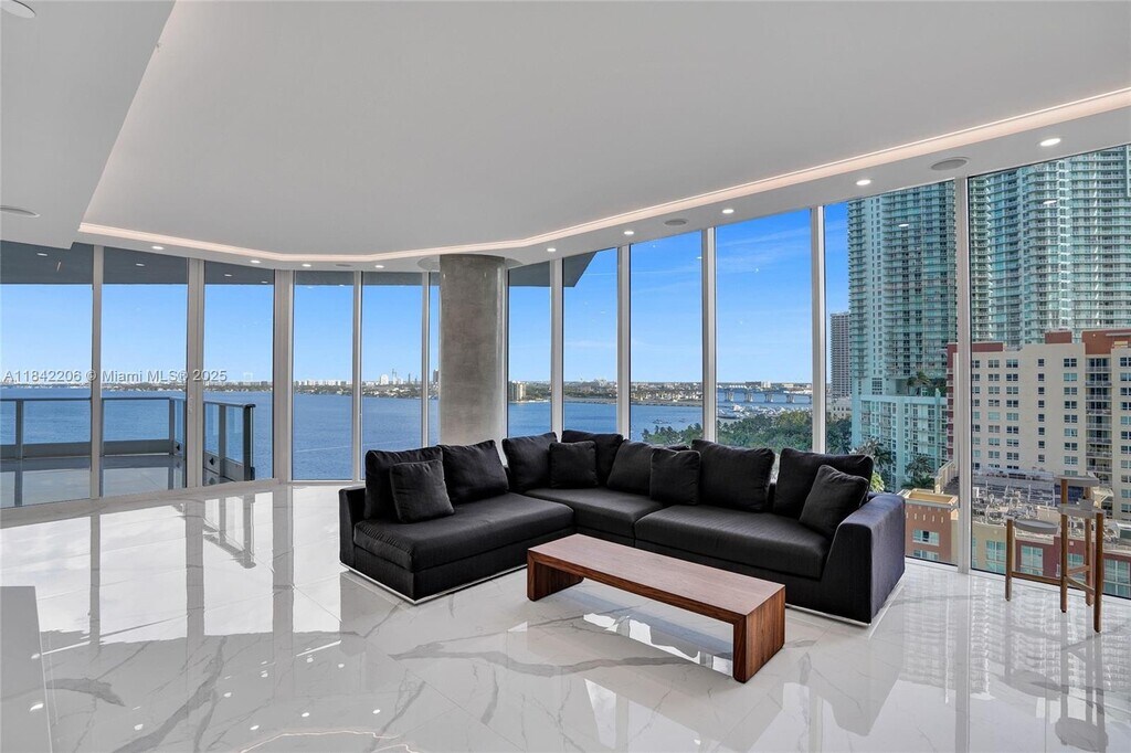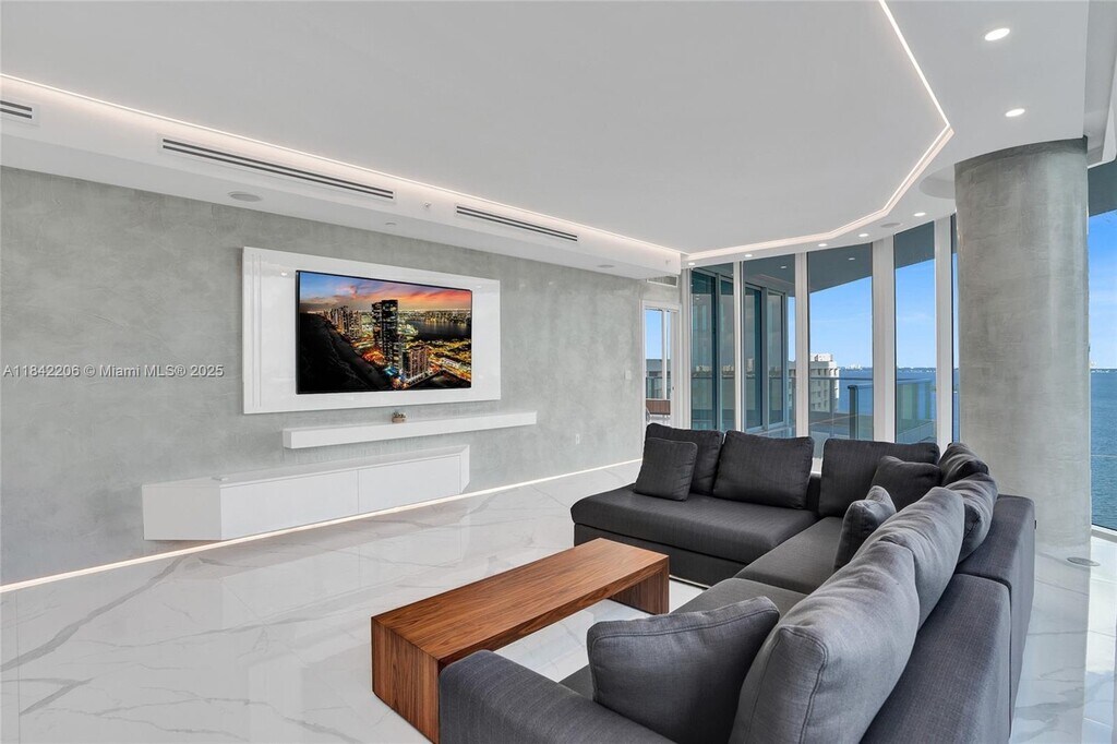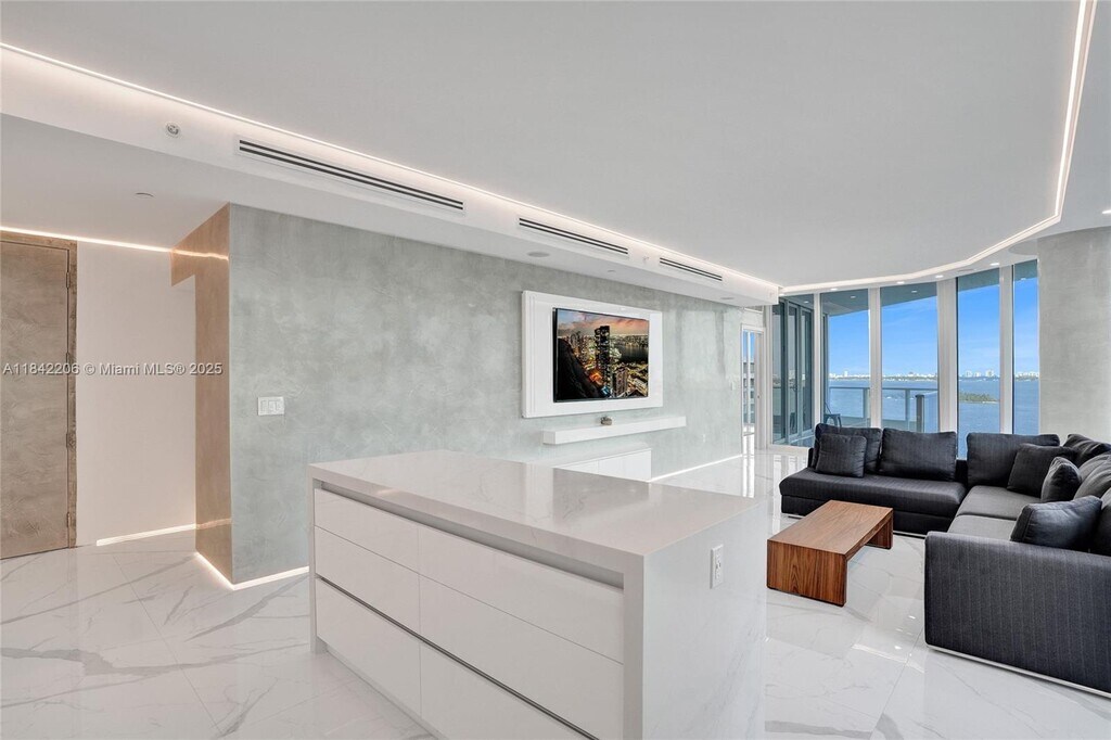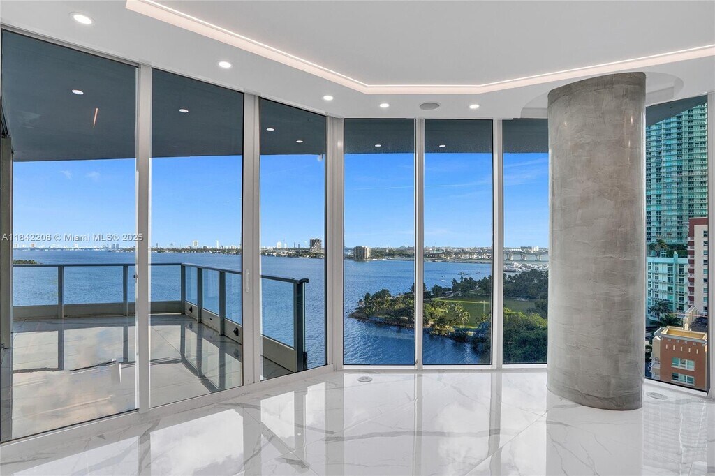 Beautiful two bedrooms and two bathrooms with amazing bay view from the living room and master bedroom. This building is like a resort with top amenities, including a heated infinity-edge swimming pool, heated sunset swimming pool, his an hers sauna and steam room, movie theater clubroom with a fully equipped kitchen and big-unscreen TV, billiard table, fitness center, spa with massage room, children's playroom, teen game room with arcade, concierge and valet parking. The building was designed by Lenny Kravitz. This unit has a private elevator, private foyer, 10 foot-high ceilings with floor to ceiling glass windows, an 8 foot-deep balcony with glass railing, in unit washer and dryer and top of the line kitchen appliances. Located in Edgewater.