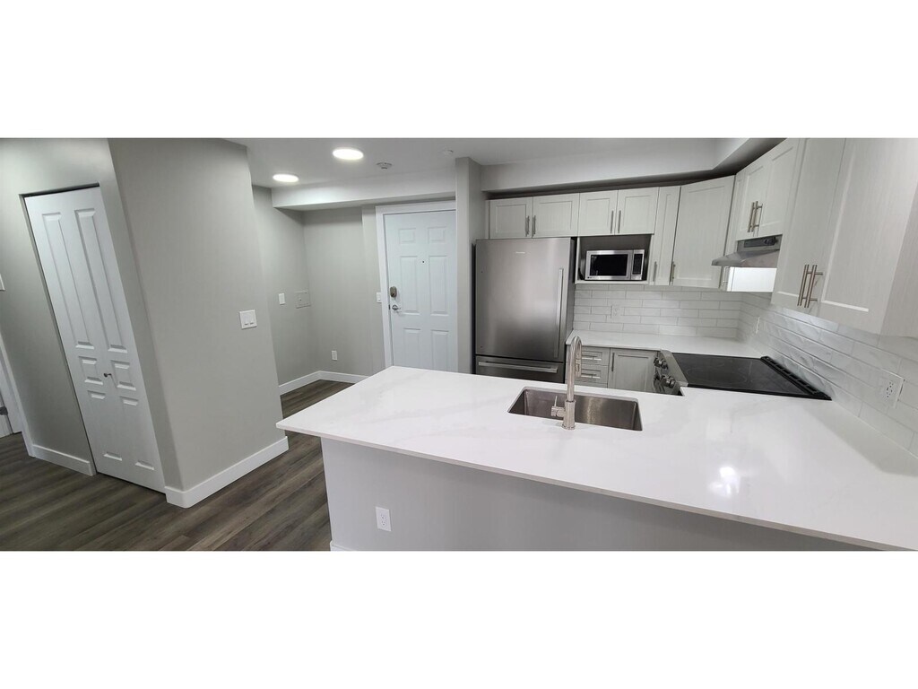 Recently renovated 2 Bed,2 Bath condo in The Bentley-a secure,pet-friendly building in central Langley City. Enjoy 804 sq. ft. of modern living with new flooring,paint,vanities,and appliances. Features include 9' ceilings,gas fireplace,open kitchen with breakfast bar,flex space,and in-suite laundry. Relax on the large south-facing balcony with peaceful tree views. Building amenities: gated entry,visitor parking,fitness centre,guest suite,1 parking stall & locker. Steps to shopping,dining,parks,and transit. (id:63800) ID#: 1483201